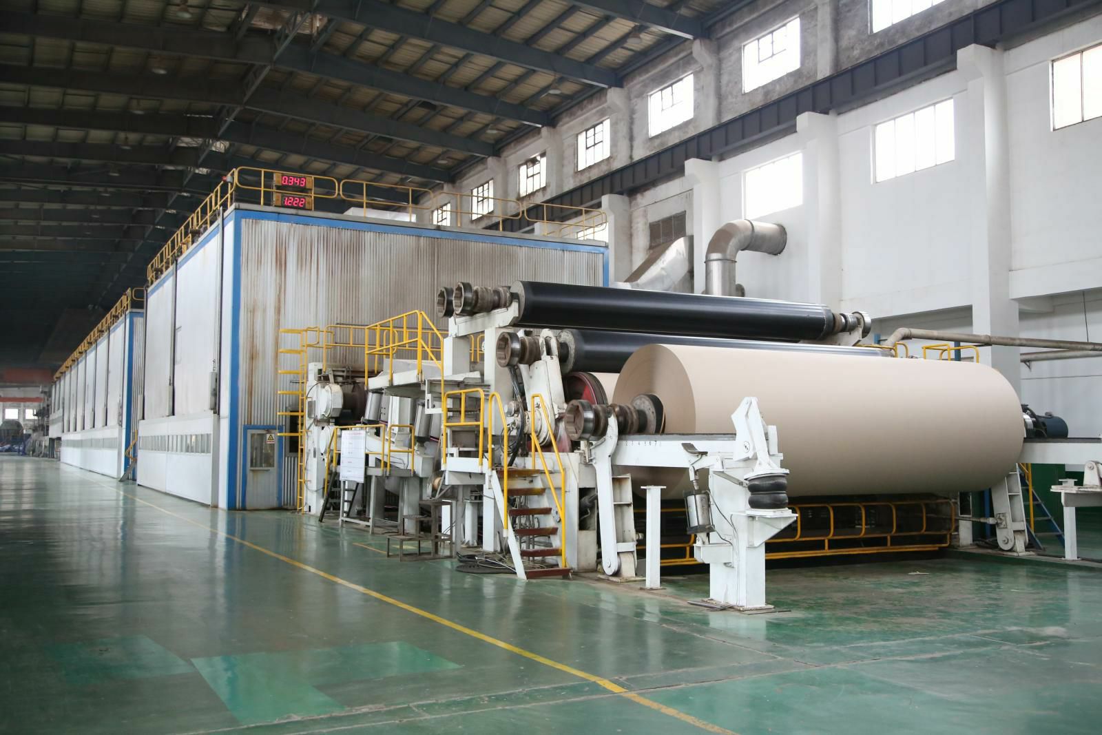 PM5造纸生产线,纸机是美卓(芬兰)制造的先进造纸设备,幅宽6.6米,设计车速1200米/分,目前运行最高车速已达1250米/分。主要生产90-220克的挂面箱板纸,年产量45万吨,带领华体会官网首页登录入口-华体会(中国)开启了包装纸生产的新纪元。
